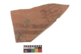 | Description / विवरण | Specimen of black on red ware with black decorative Parallel wavy lines geometric painting. |