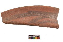 | Description / विवरण | Specimen of black on red ware with decorative geometric Its decorated with two horizontal bands with sets of triple arches painting. |