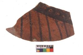 | Description / विवरण | Specimen of potsherd with black decorative geometric Linear painting, Type Black on Red Ware . |