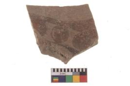 | Description / विवरण | Specimen of black on red ware with black decorative Circle pattern geometric painting. |
