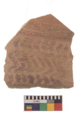 | Description / विवरण | Specimen of black on red ware with black decorative Parallel wavy lines geometric painting. |