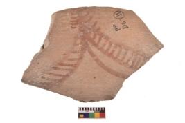| Description / विवरण | Specimen of potsherd with decorative geometric painting. Type Red on Red Ware . |