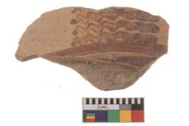 | Description / विवरण | Specimen of black on red ware with black decorative Parallel wavy lines geometric painting. |