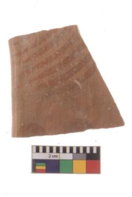 | Description / विवरण | Specimen of black on red ware with black decorative Parallel curved lines geometric painting. |