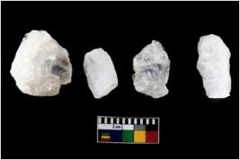 | Description / विवरण | Specimen of cores with weathered cortex and several broad fluted marks. Some of them are irregular in shape, whereas some are tapering at one end. |