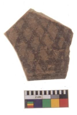 | Description / विवरण | Specimen of black on red ware with black decorative Lattice pattern geometric painting. |