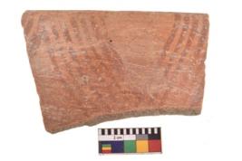 | Description / विवरण | Specimen of potsherd with decorative geometric painting. Type Red on Red Ware . |