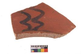 | Description / विवरण | Specimen of potsherd with black decorative painting, Type Black on Red Ware . |