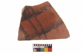 | Description / विवरण | Specimen of potsherd with black decorative geometric Linear painting, Type Black on Red Ware . |