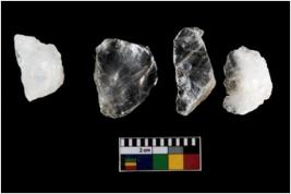 | Description / विवरण | Specimen of cores with weathered cortex and several broad fluted marks. Some of them are irregular in shape, whereas some are tapering at one end. |