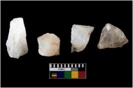 | Description / विवरण | Specimen of cores with weathered cortex and several broad fluted marks. Some of them are irregular in shape, whereas some are tapering at one end. |