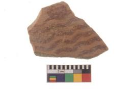 | Description / विवरण | Specimen of black on red ware with black decorative Parallel wavy lines geometric painting. |