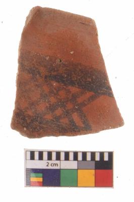 | Description / विवरण | Specimen of potsherd with black decorative geometric Net Pattern painting, Type Black on Red Ware . |