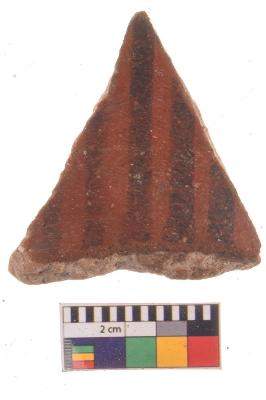 | Description / विवरण | Specimen of potsherd with black decorative geometric Linear painting, Type Black on Red Ware . |