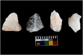 | Description / विवरण | Specimen of cores with weathered cortex and several broad fluted marks. Some of them are irregular in shape, whereas some are tapering at one end. |