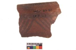 | Description / विवरण | Specimen of potsherd with black decorative geometric Linear painting, Type Black on Red Ware . |