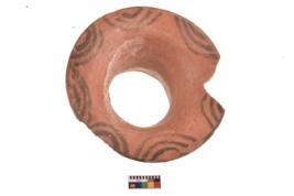 | Description / विवरण | Specimen of potsherd with half circular decorative geometric painting on the Rim. Type Black on Red Ware . |