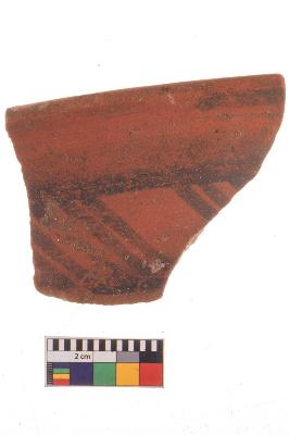| Description / विवरण | Specimen of potsherd with black decorative geometric Linear painting, Type Black on Red Ware . |