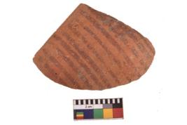| Description / विवरण | Specimen of potsherd with decorative geometric painting. Type Red on Red Ware . |