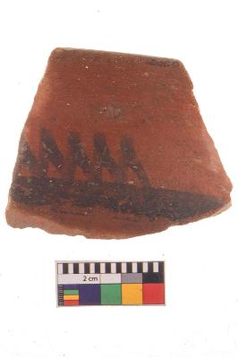 | Description / विवरण | Specimen of potsherd with black decorative zigzag painting, Type Black on Red Ware . |