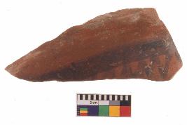 | Description / विवरण | Specimen of potsherd with black decorative geometric Set of two zigzag bands painting, Type Black on Red Ware . |