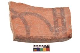 | Description / विवरण | Specimen of potsherd with decorative geometric painting. Type Black on Red Ware . |