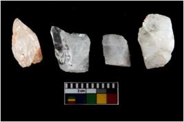 | Description / विवरण | Specimen of cores with weathered cortex and several broad fluted marks. Some of them are irregular in shape, whereas some are tapering at one end. |