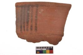 | Description / विवरण | Specimen of black on red ware with decorative geometric A groups of vertical lines set in horizontal bands painting. |