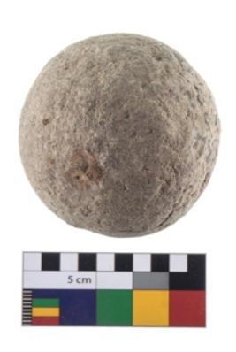 | Description / विवरण | A Hammer stone roughly rounded in shape with grounded edges. |
