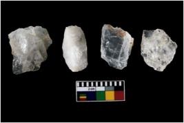 | Description / विवरण | Specimen of cores with weathered cortex and several broad fluted marks. Some of them are irregular in shape, whereas some are tapering at one end. |