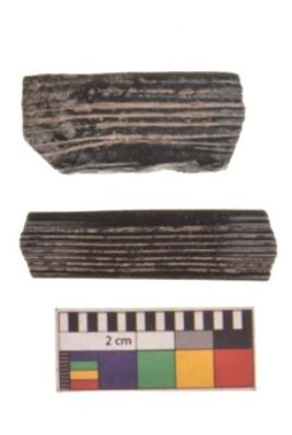 | Description / विवरण | Specimen n-2 having horizontal grooves and glossy black surface. They are circular in cross-section. |