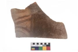 | Description / विवरण | Specimen of potsherd black on red painted pottery. It is fine fabric in sharp contrast with painted design are executed in black pigment. |
