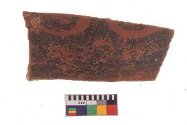 | Description / विवरण | Specimen of potsherd with black decorative painting, Type Black on Red Ware . |