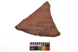 | Description / विवरण | .0Specimen of black on red ware with decorative geometric Oblique lines painting. |