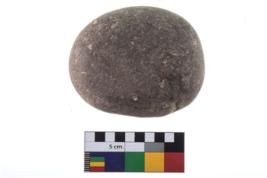 | Description / विवरण | A Hammer stone roughly rounded in shape with grounded edges. |