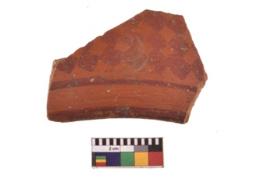 | Description / विवरण | Specimen of potsherd with decorative geometric painting. Type Red on Red Ware . |