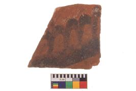 | Description / विवरण | Specimen of potsherd with black decorative geometric Linear painting, Type Black on Red Ware . |