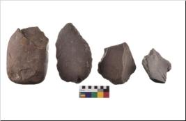 | Description / विवरण | There are n-4 of utilized flake cores. There are multidirectional irregular dominant scar pattern on both dorsal and ventral face of the cores. |