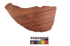| Description / विवरण | Specimen of potsherd with decorative geometric painting. Type Red on Red Ware . |
