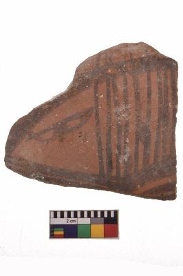 | Description / विवरण | Specimen of black on red ware with decorative geometric Oblique lines and geometric motif painting. |