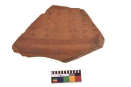 | Description / विवरण | Specimen of potsherd with decorative geometric painting. Type Red on Red Ware . |