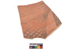 | Description / विवरण | A specimen of a potsherd. It is reddish in colour with black decorative geometric painting on it. |