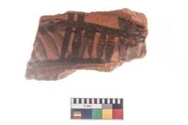 | Description / विवरण | Specimen of potsherd with black decorative geometric painting . |