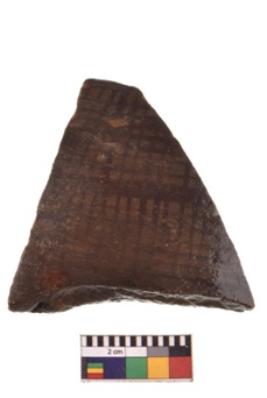 | Description / विवरण | Specimen of potsherd with decorative geometric painting. Type Black on Red Ware . |
