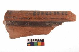 | Description / विवरण | Specimen of potsherd with black decorative painting, Type Black on Red Ware . |