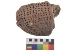 | Description / विवरण | A specimen of a perforated lid. It is reddish in colour, well fired and smooth in colour. |