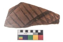 | Description / विवरण | Specimen of potsherd with black decorative geometric painting . |