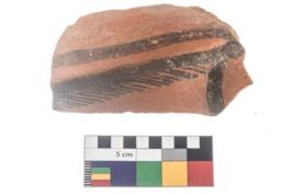| Description / विवरण | Specimen of potsherd with black decorative geometric painting . |