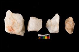 | Description / विवरण | Specimen of a cores with several broad fluted marks. The reverse bulb and platform can be seen. The flake scars are seen on all sides. |