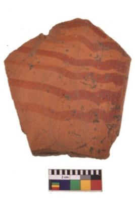 | Description / विवरण | Specimen of potsherd with decorative geometric painting. Type Red on Red Ware . |